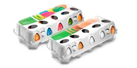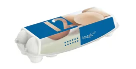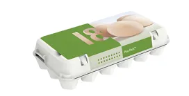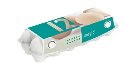 Strong, stackable and flap-free carton for 12 eggs. Optimised for machine packing and shelf impact with vibrant colours and large print area.