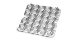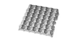 Universal tray for 30 eggs, Ideal for S, M, and L eggs. Optimised for automation with smooth handling, consistent performance, and recyclable moulded fibre.